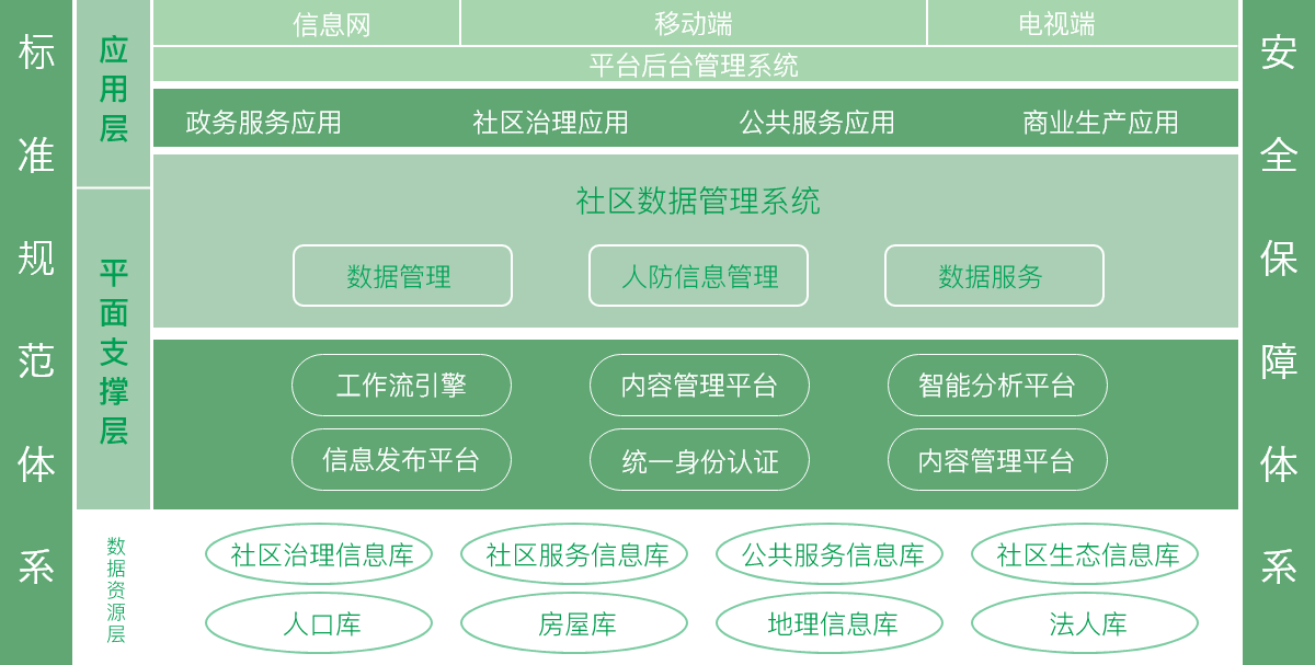 以居民、領導、綜治進行多端融合與擴展,緊緊圍繞人、地、事、物、組織和房屋等信息,統籌社區治理、政務服務、公共服務和商業服務,真正做到由一支隊伍統管、一張網絡統攬、一個平臺統調、一套機制統籌為目的。
